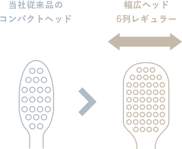 We've developed a groundbreaking toothbrush featuring a "wide head" that boasts approximately twice the number of holes compared to our compact head (our conventional product). This design allows for an increased hair implantation, resulting in a significantly wider contact area between the teeth and the brush.